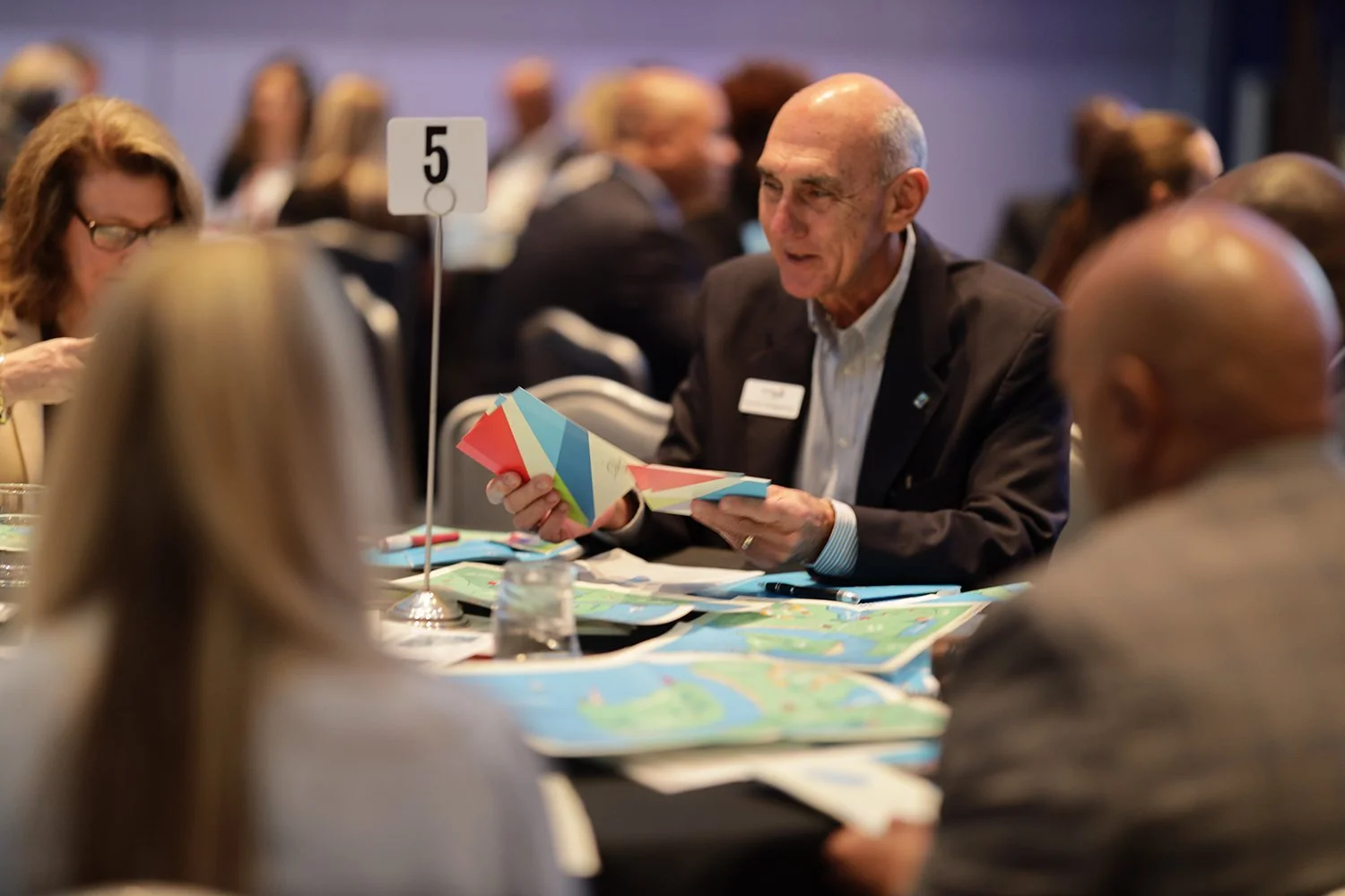 We created a gamified, interactive exercise that served as the backbone of the summit. An asset map used relevant steps in the workforce development planning process and was accompanied by a set of 11 cards that provided additional information for each of these critical pieces of workforce planning. Working together with communities of diverse needs, participants learned from one another and expert speakers. The result was a customized plan to take back to their communities with immediate actions to take.